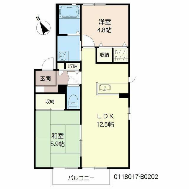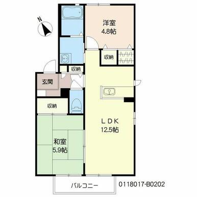 2LDK(LDK12.5帖 和室5.9帖 洋室4.8帖) |